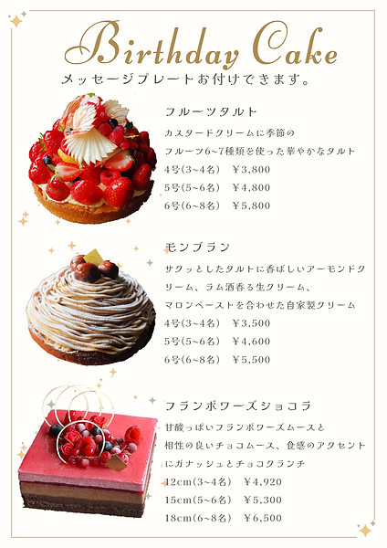 ウエディングケーキなど特注ケーキ:1週間前まで